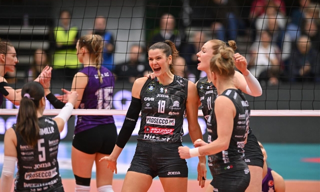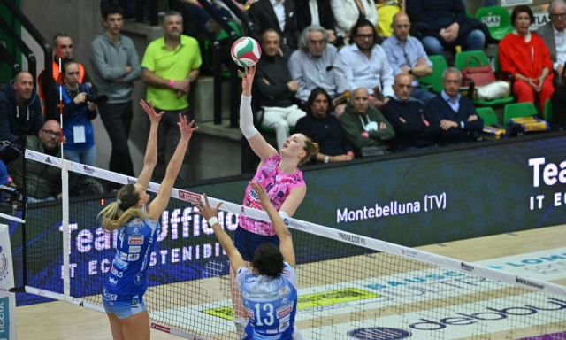 Avanti 2-0 con la solita devastante Tolok da 34 punti, poi Haak e Zhu regalano il successo per 3-2 alle trevigiane